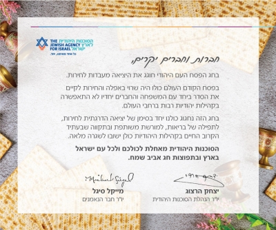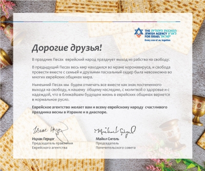 Нынешний Песах мы будем отмечать все вместе как знак постепенного выхода на свободу, к нашему общему наследию, с молитвой о здоровье и с надеждой, что в ближайшем будущем жизнь в еврейских общинах вернется в нормальное русло.