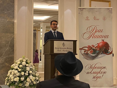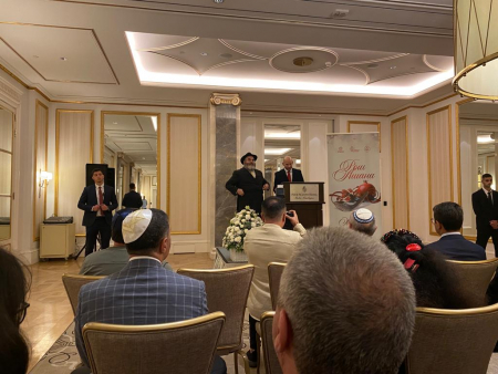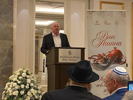 С поздравлениями Выступили Заместитель посла Израиля г. Дорон Пеер, Директор центра Мультикультурализма Азербайджанской республики г. Раван Гасанов, Председатель общины европейских Евреев, народный артист Азербайджана А.Я.Шаровский, Главный раввин Общины Европейских Евреев Азербайджана Шнеор Сегал.