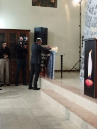 В завершение вечера состоялось зажигание поминальных свечей, которые зажгли председатель Общины европейских евреев Шаровский А.Я., председатель Общины горских евреев М. Евдаев, консул Государства Израиль в Азербайджане М. Ифраимов, депутат Милли Меджлиса А. Рафаилов, представитель фонда СМЭГИ Ш. Давидов, директор Хесед Гершон Б. Мушаилов.
