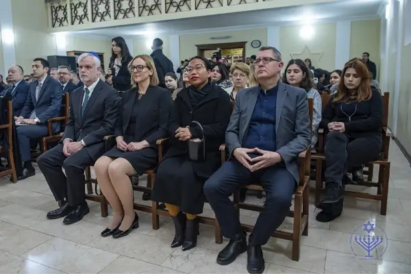 С речами выступили Чрезвычайный и Полномочный посол Государства Израиль в Азербайджане г. Джорж Дик, Председатель Общины европейских евреев Александр Шаровский, представители Азербайджанского Государства С. Гейдаров – заместитель председателя Государственного комитете по работе с религиозными организациями, Р. Гасанов – директор центра Мультикультурализма.
