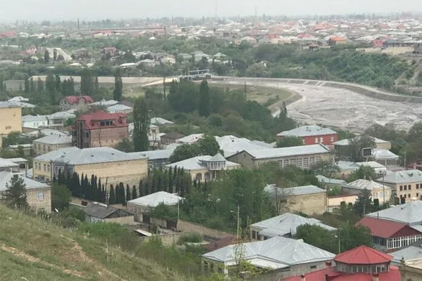 ‘Red Village’ front partial view photo, Guba town across the Gudiyal-chay river