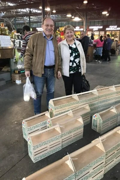 Djamila and Yevgeny Brenneysen at the produce Bazar